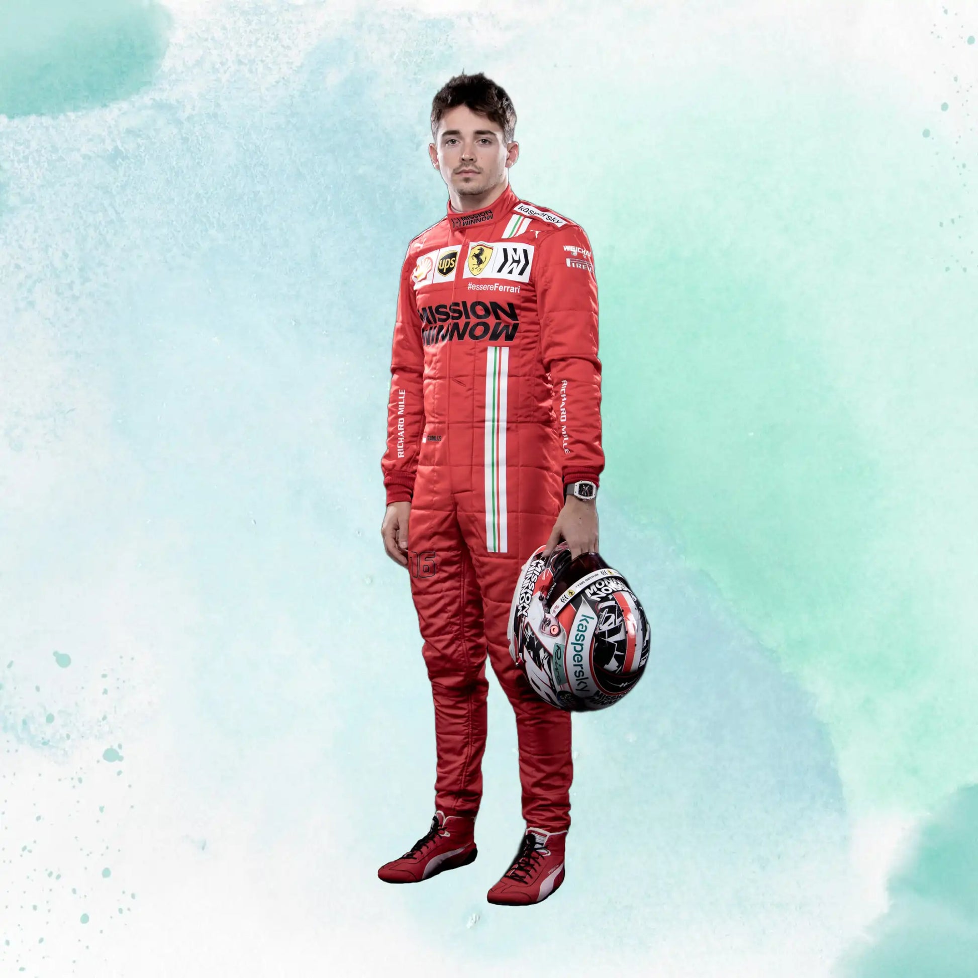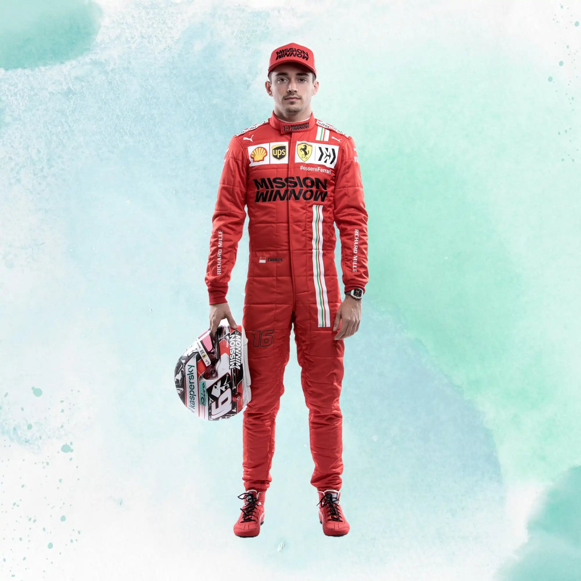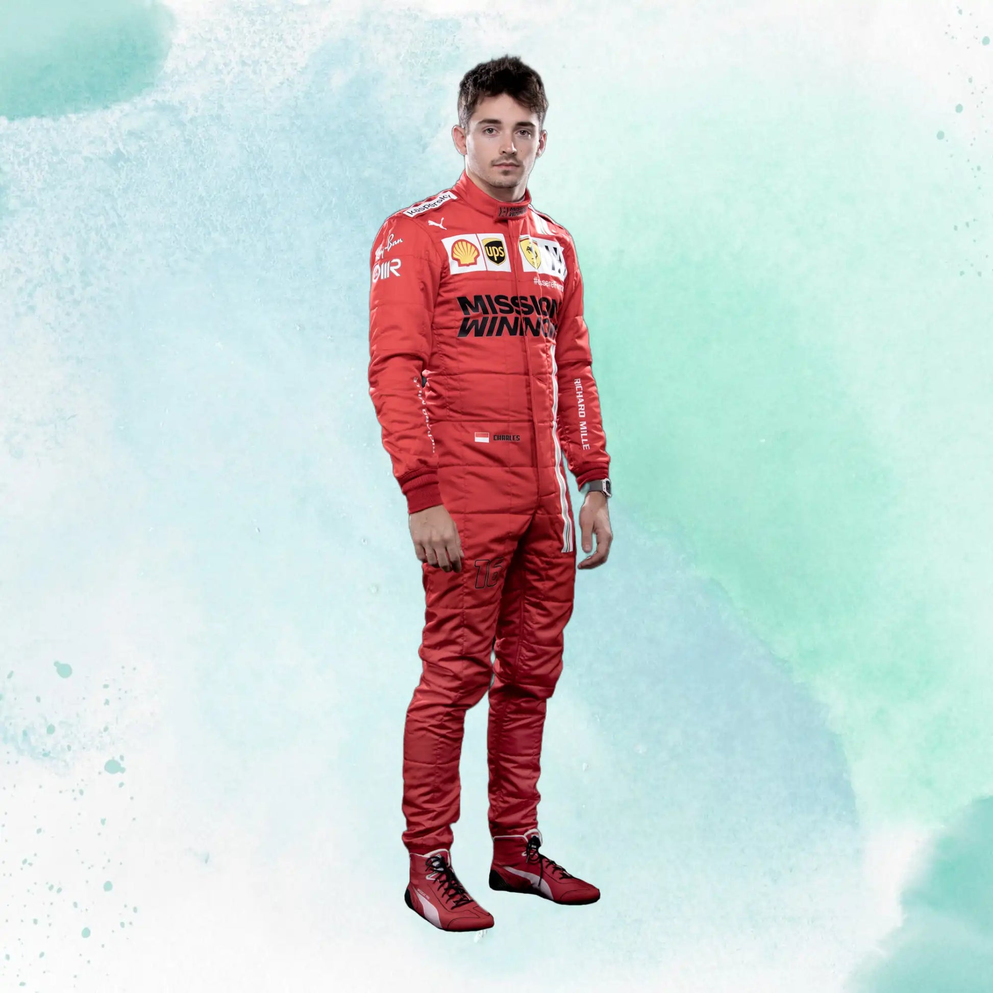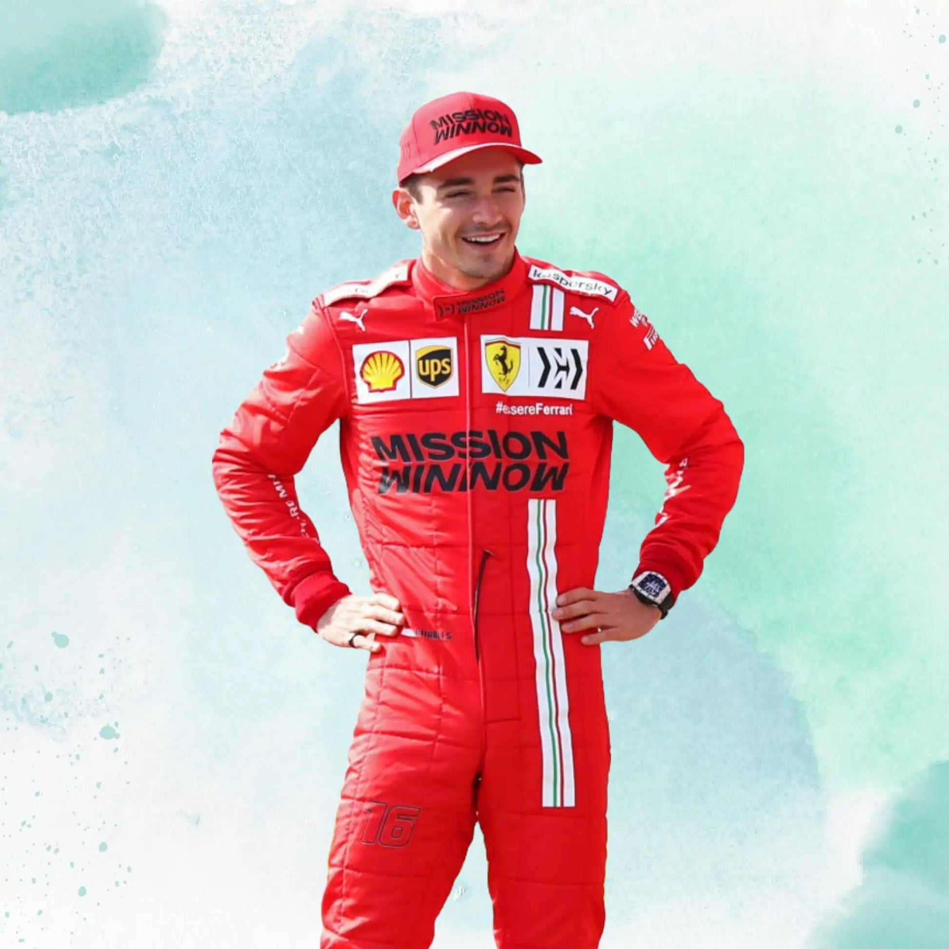 2021 Charles Leclerc Ferrari Replica Racing Suit Formula 1 Team Mission Winnow