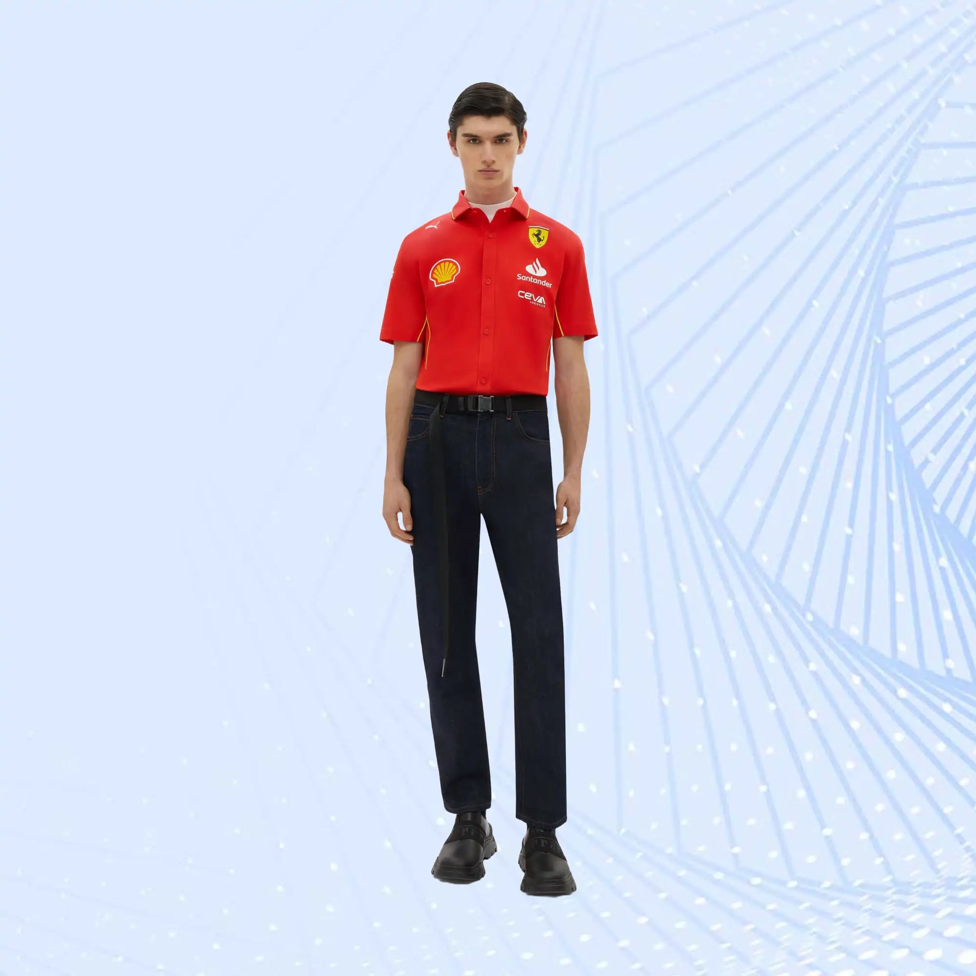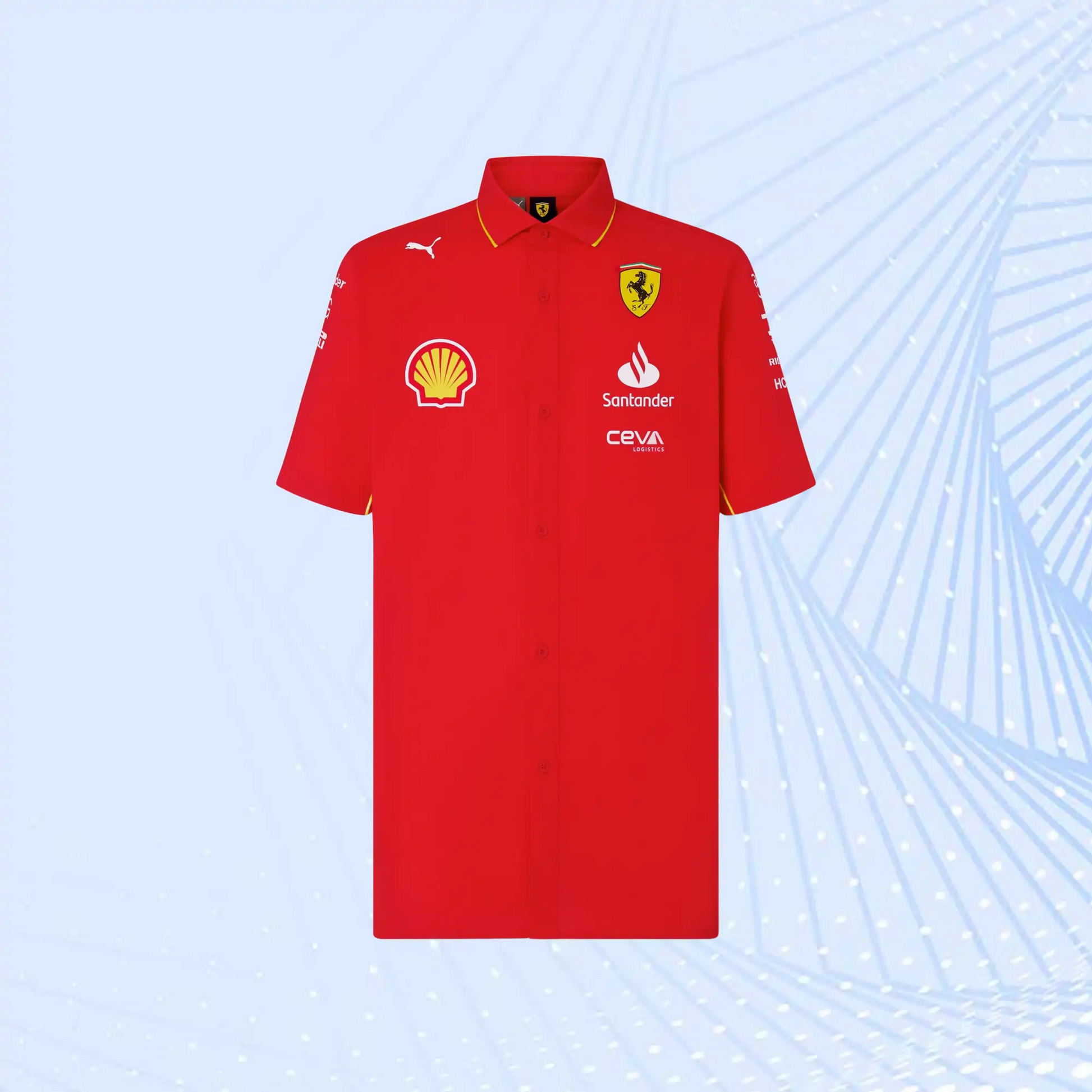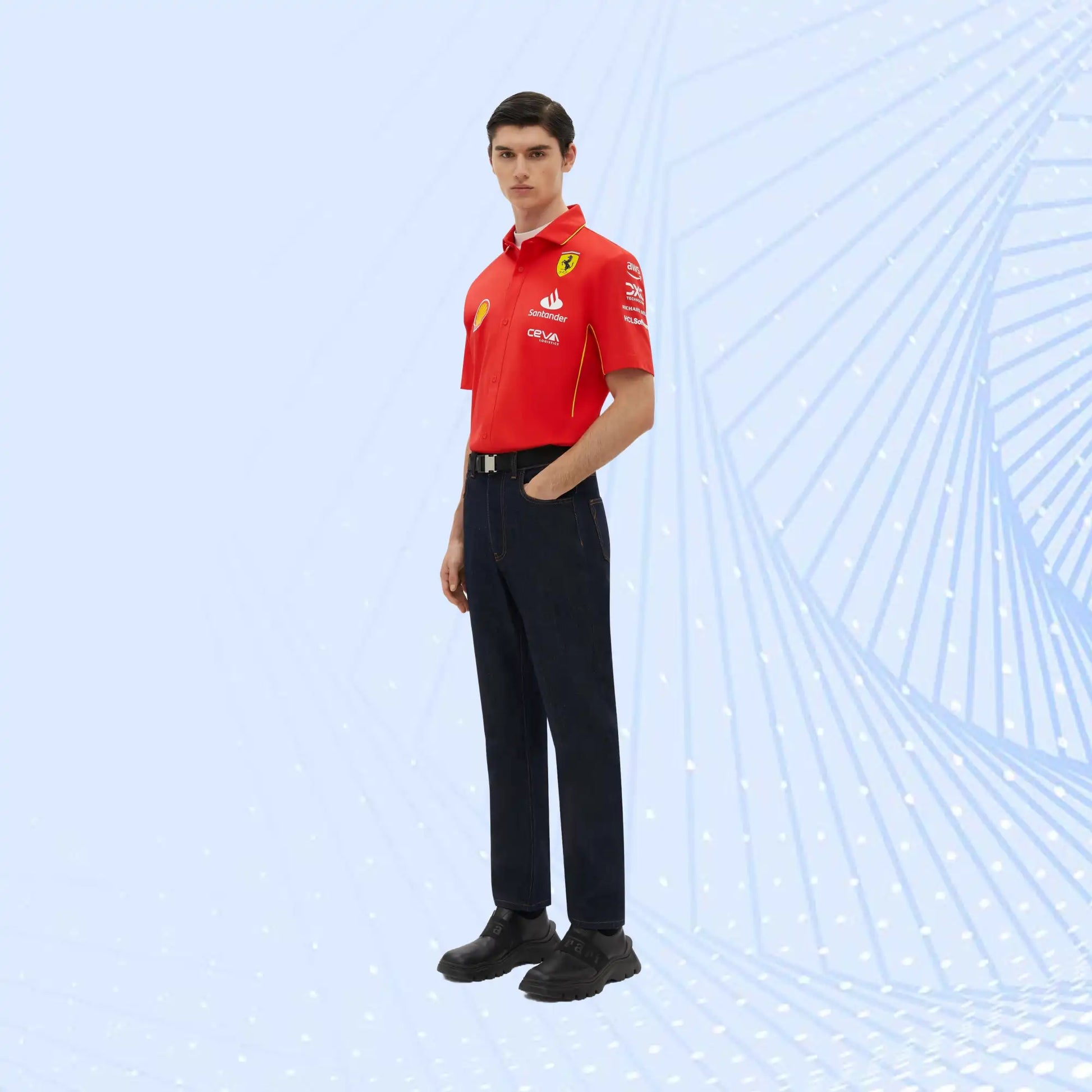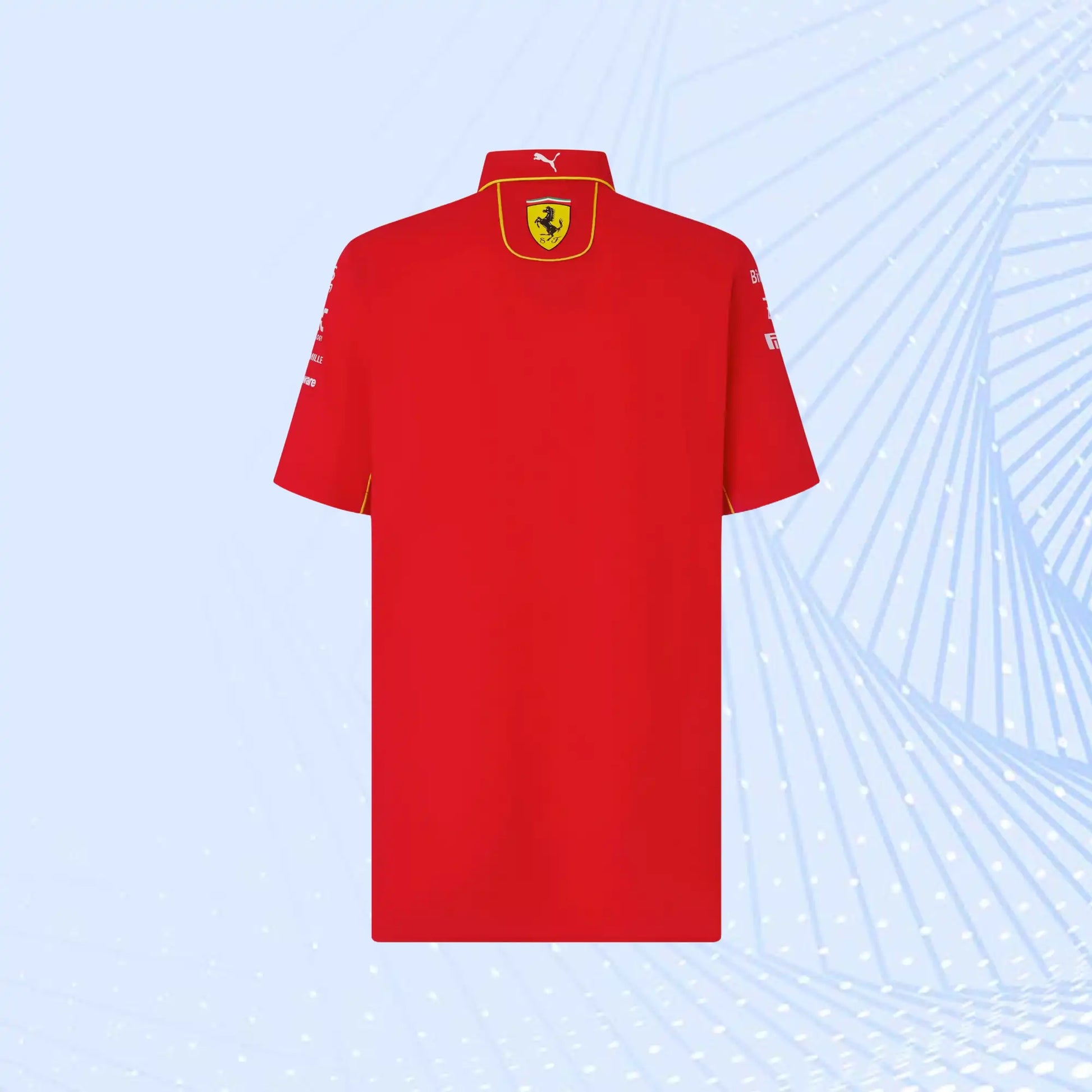 The 2024 Replica collection shirt recalls the design of the original model worn by the Scuderia Ferrari Team during the Formula 1 season. The new, modern interpretation of the classic red, the bold details in Giallo Modena and sponsor logos create an essential piece of clothing with a dynamic character, to be worn on and off the racing track.