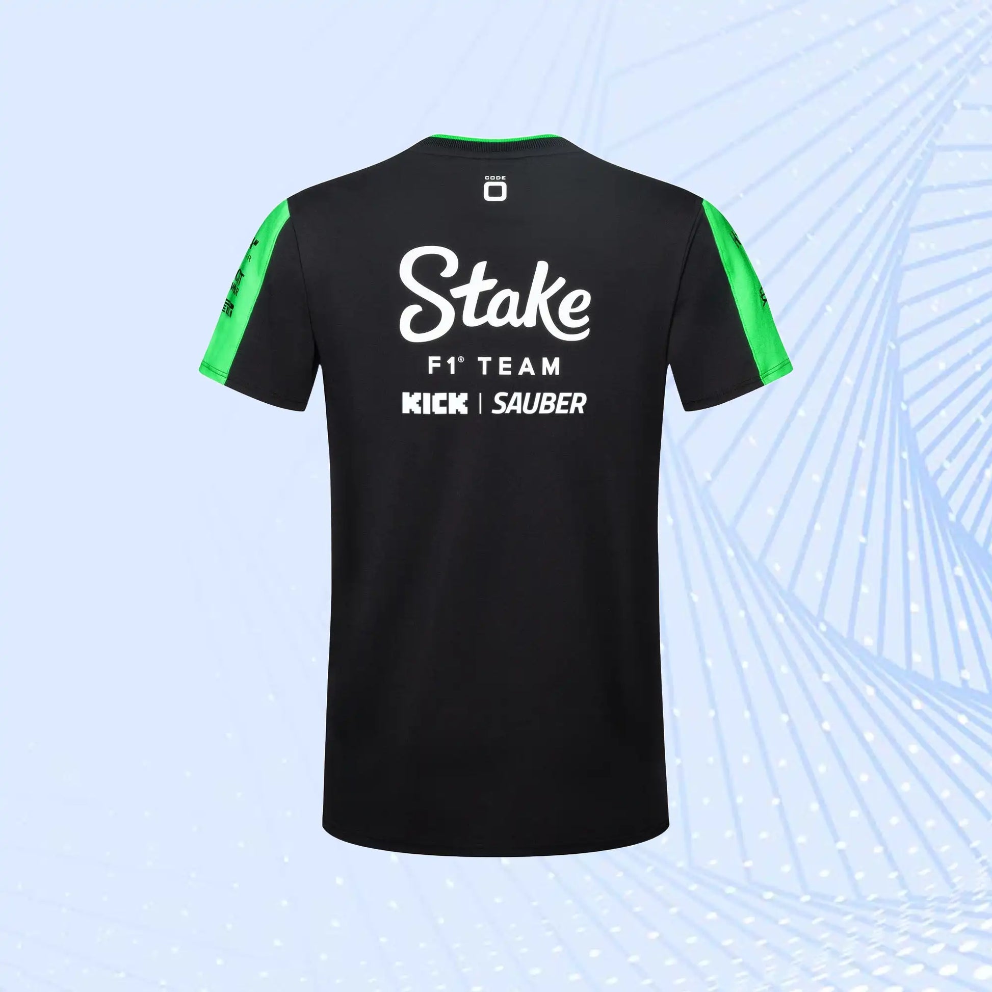The front proudly features the distinctive "Stake" logo and script, capturing the essence of the Stake F1 Team Kick Sauber dynamic spirit. Embrace the racing season in style as the chest and back showcase the official "Stake F1 Team Kick Sauber" logo, symbolizing your unwavering support for the team's thrilling journey on the track.