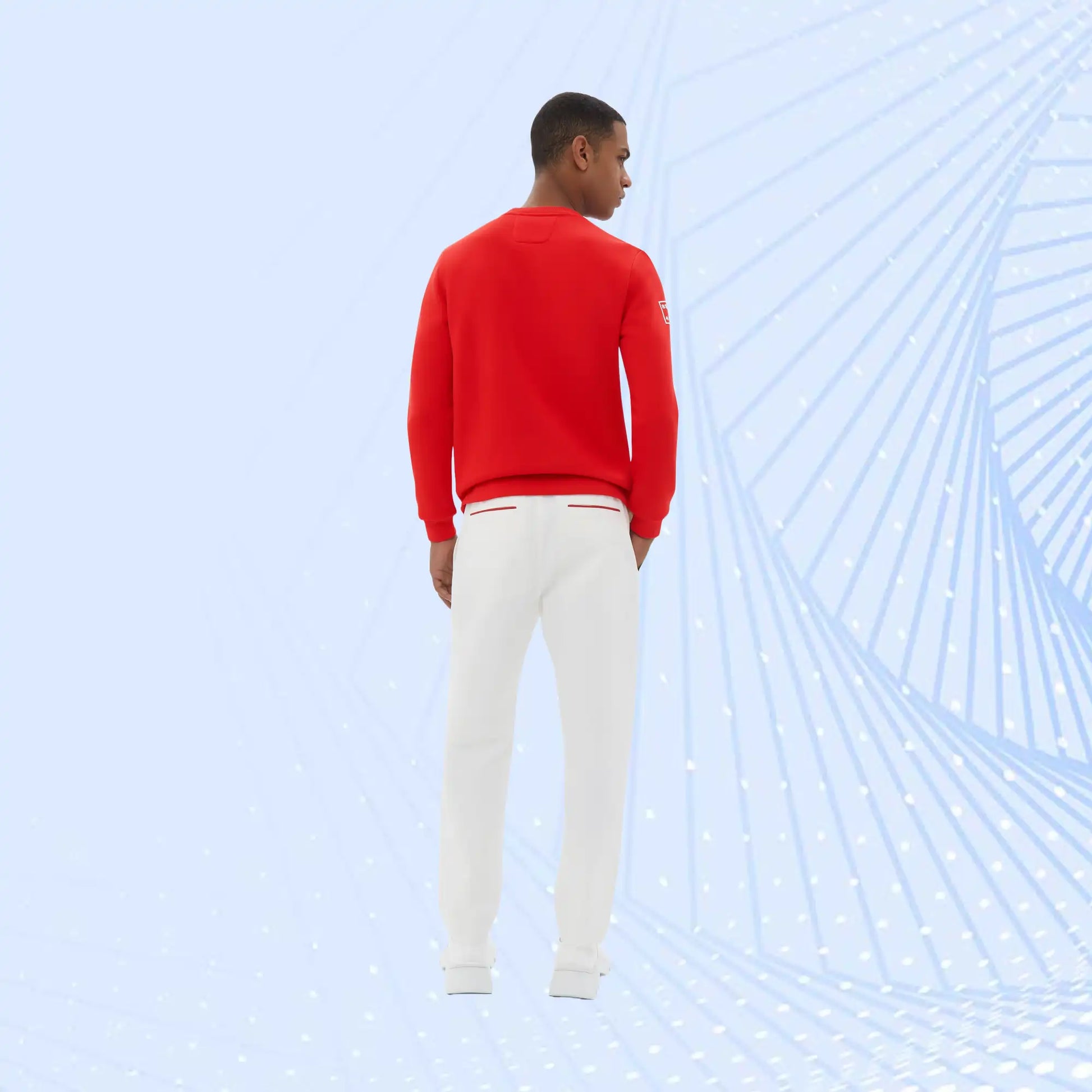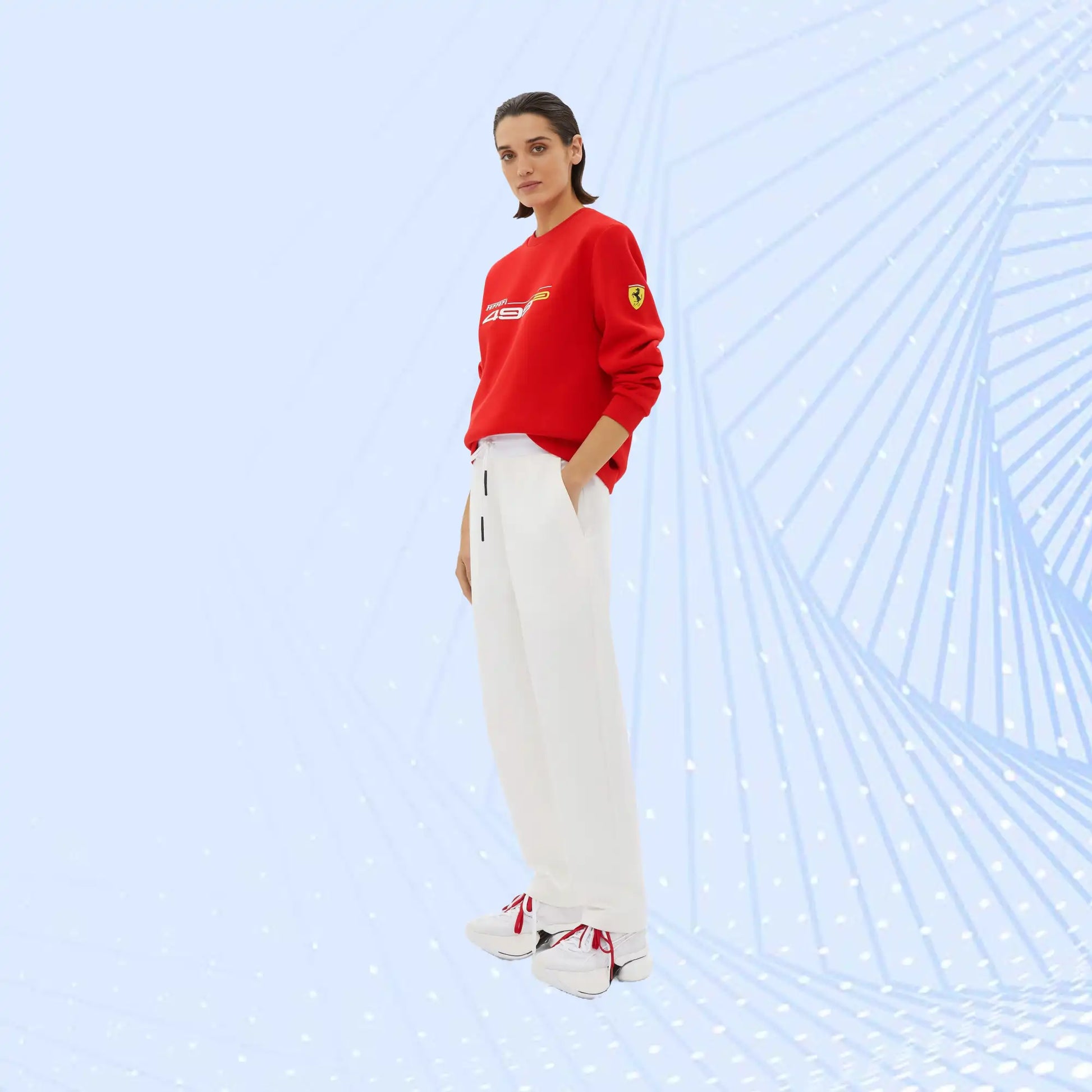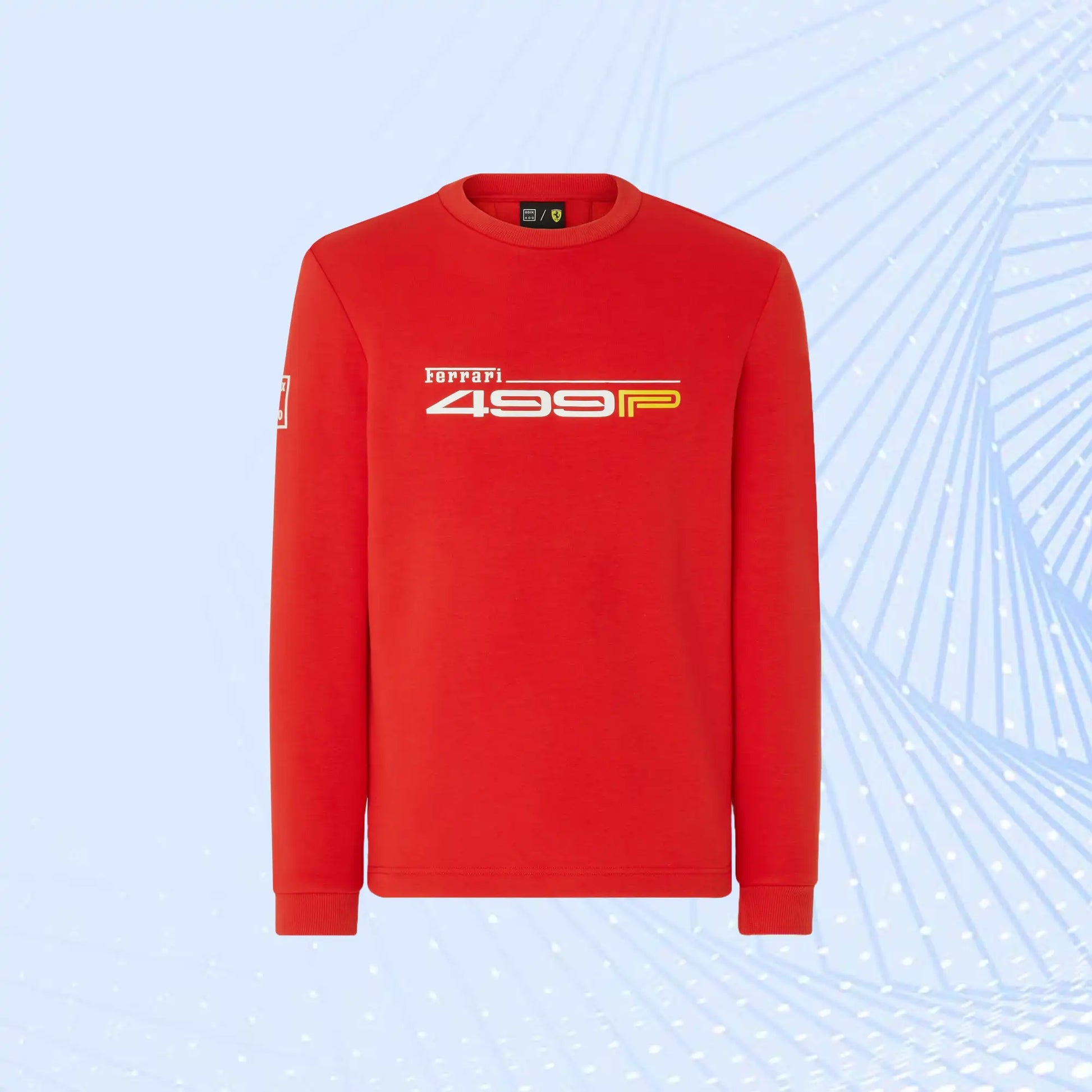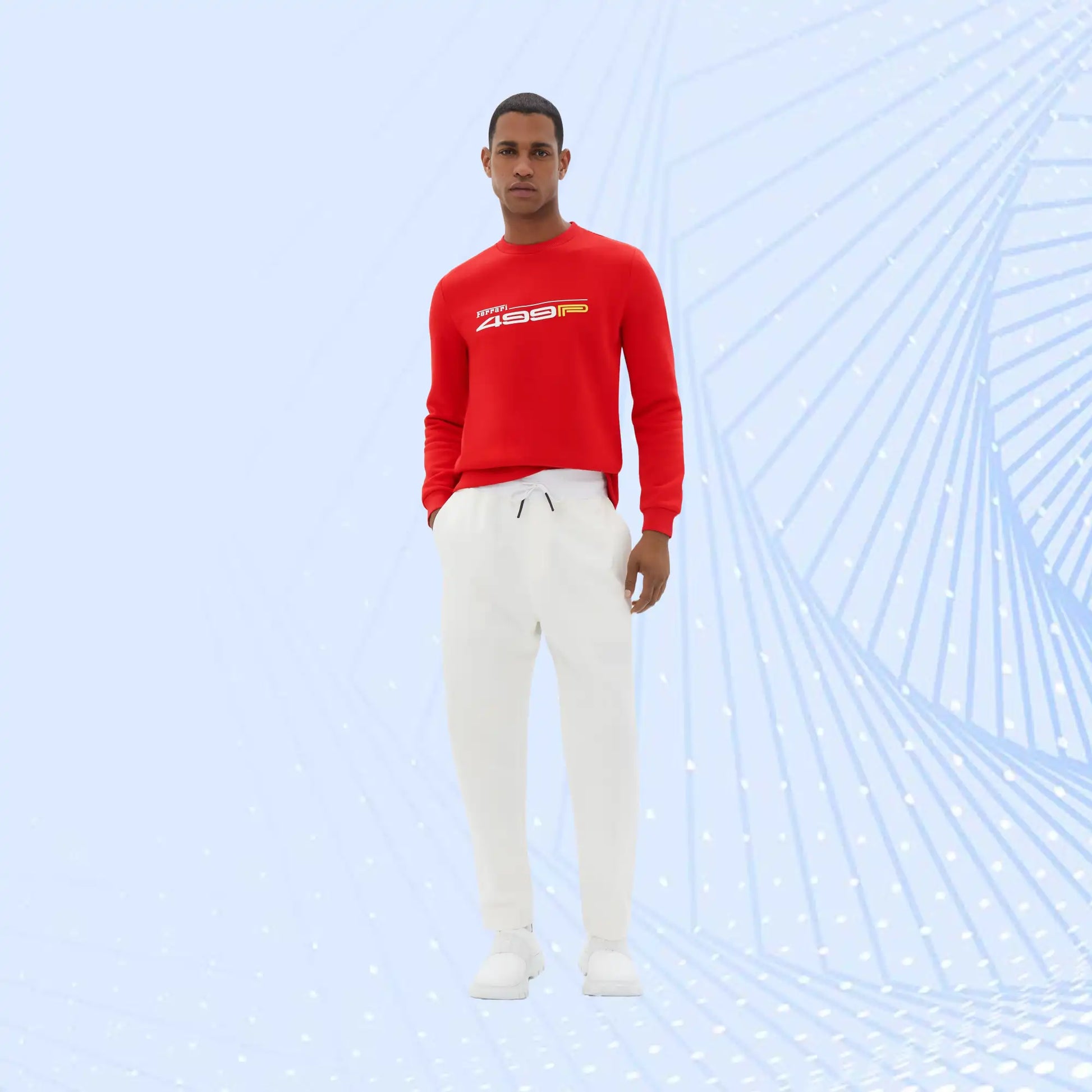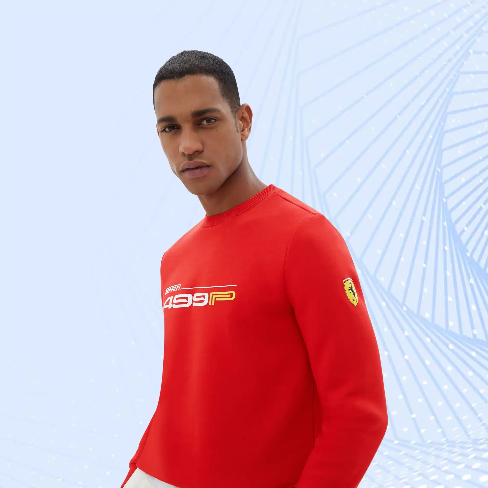 The garment, made of soft cotton-blend French terry, was created to be worn on and off the race track and is enhanced by contrasting yellow details, a tribute to the heritage of the city of Modena, and the unmistakable sponsor logos. With large kangaroo pocket.