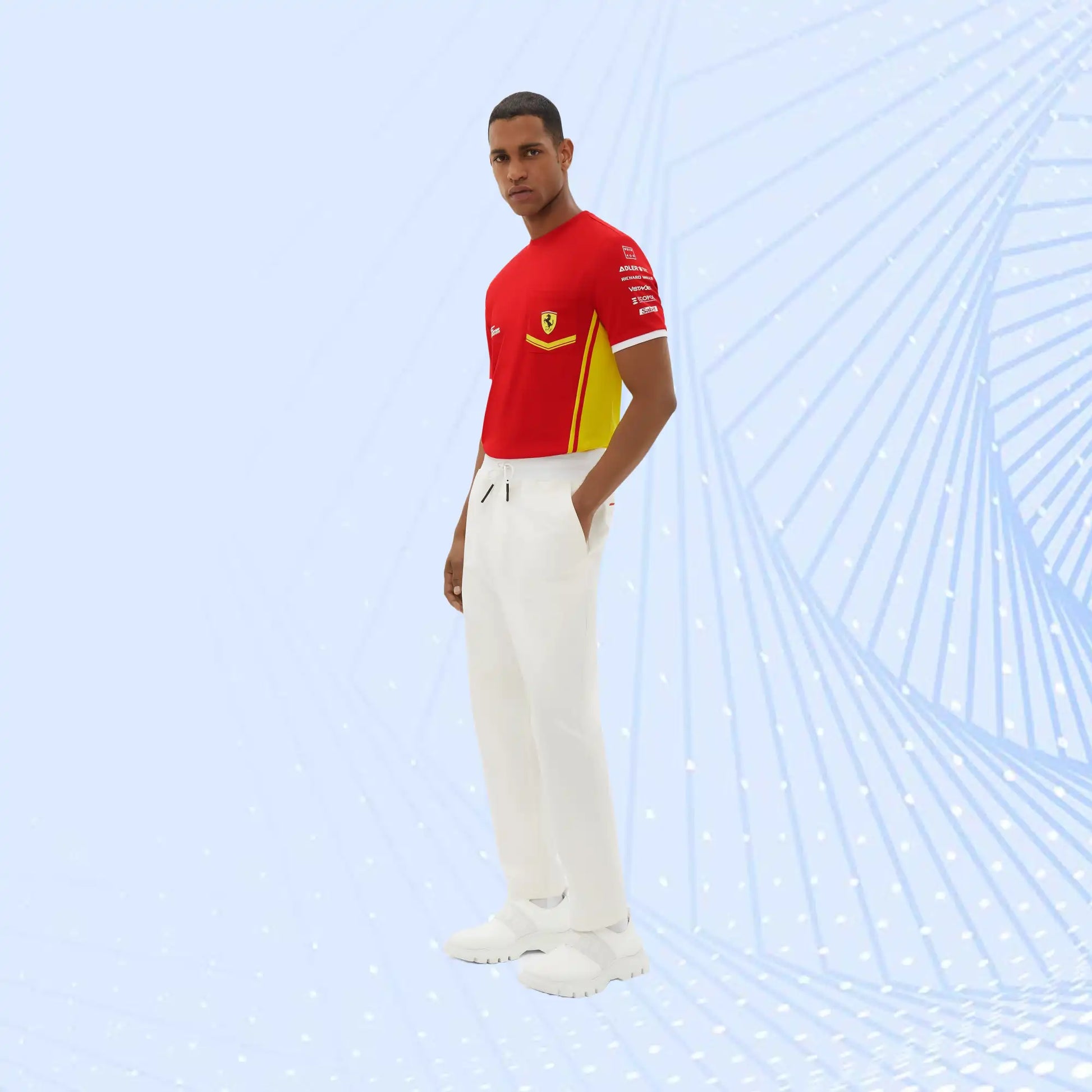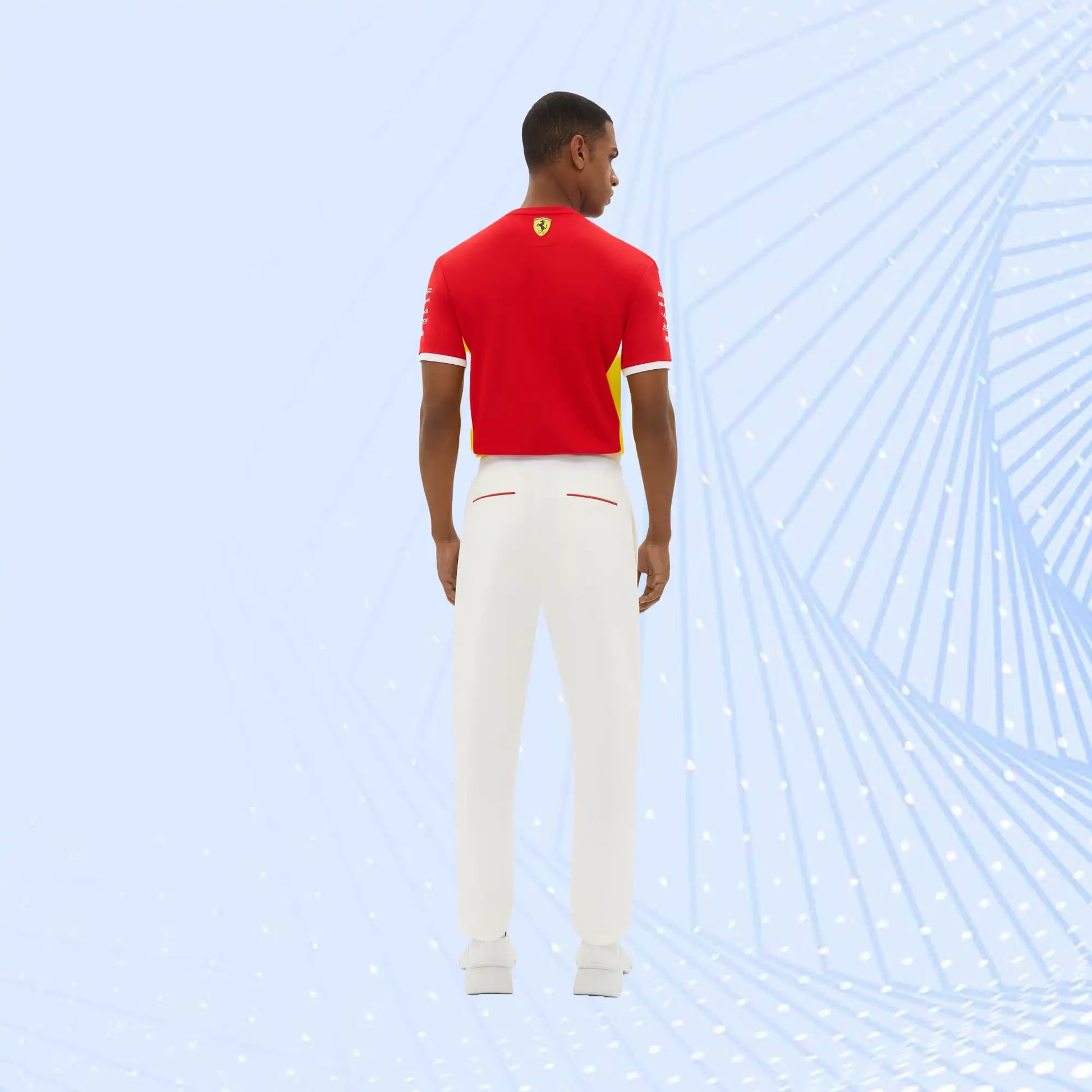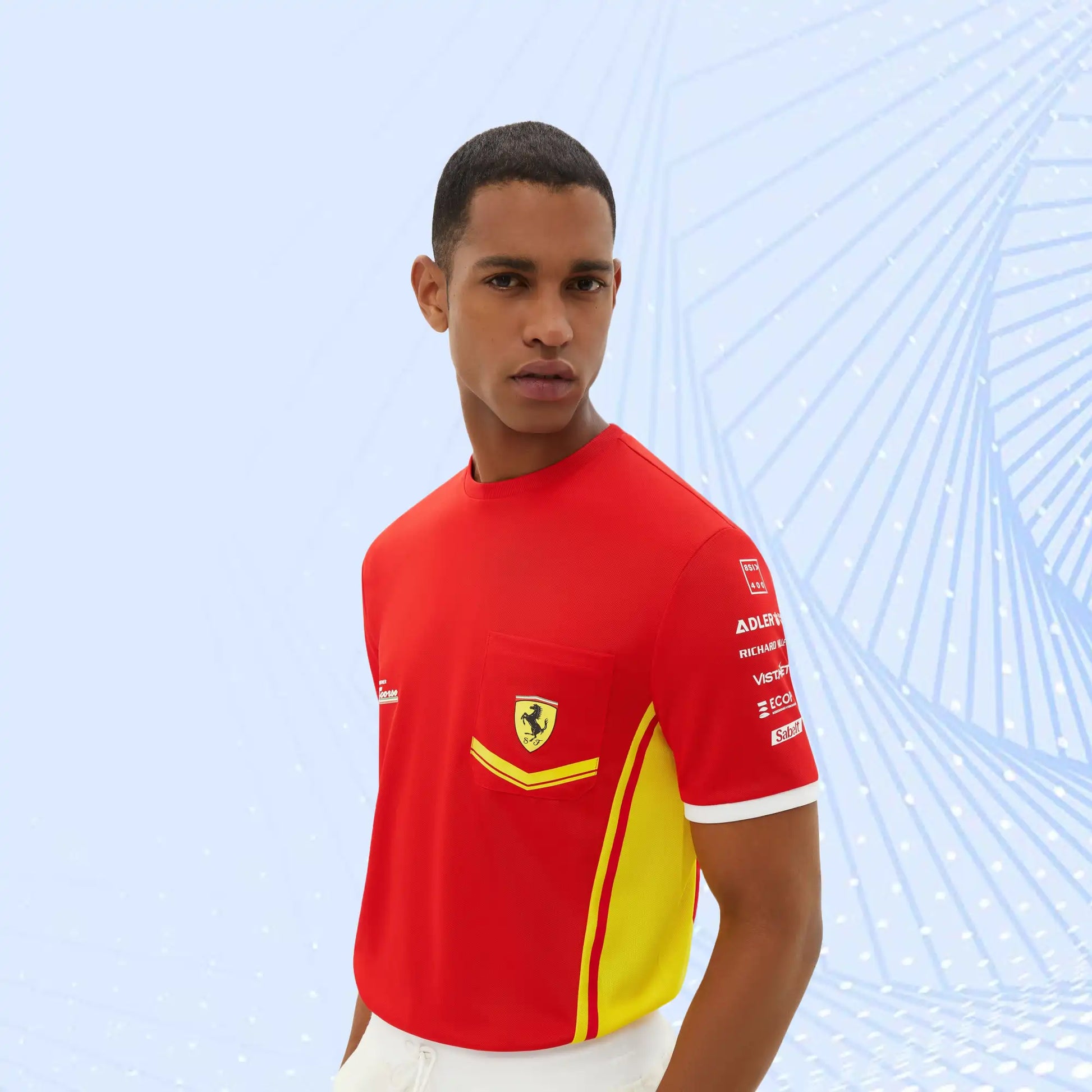 A definite inspiration from the world of football influences the style of this jersey, once again demonstrating Scuderia Ferrari's ability to transcend motor racing. Its design echoes the lines of the model worn by Carlos Sainz on the 2024 Austrian GP circuit, characterised by the yellow accents of the vertical stripes motif and the ever-present Ferrari Scudetto applied to the front. The short-sleeved garment made in a special edition by Puma for Scuderia Ferrari is completed by the sponsors' logos and the maxi print with the driver's number in contrast on the back.