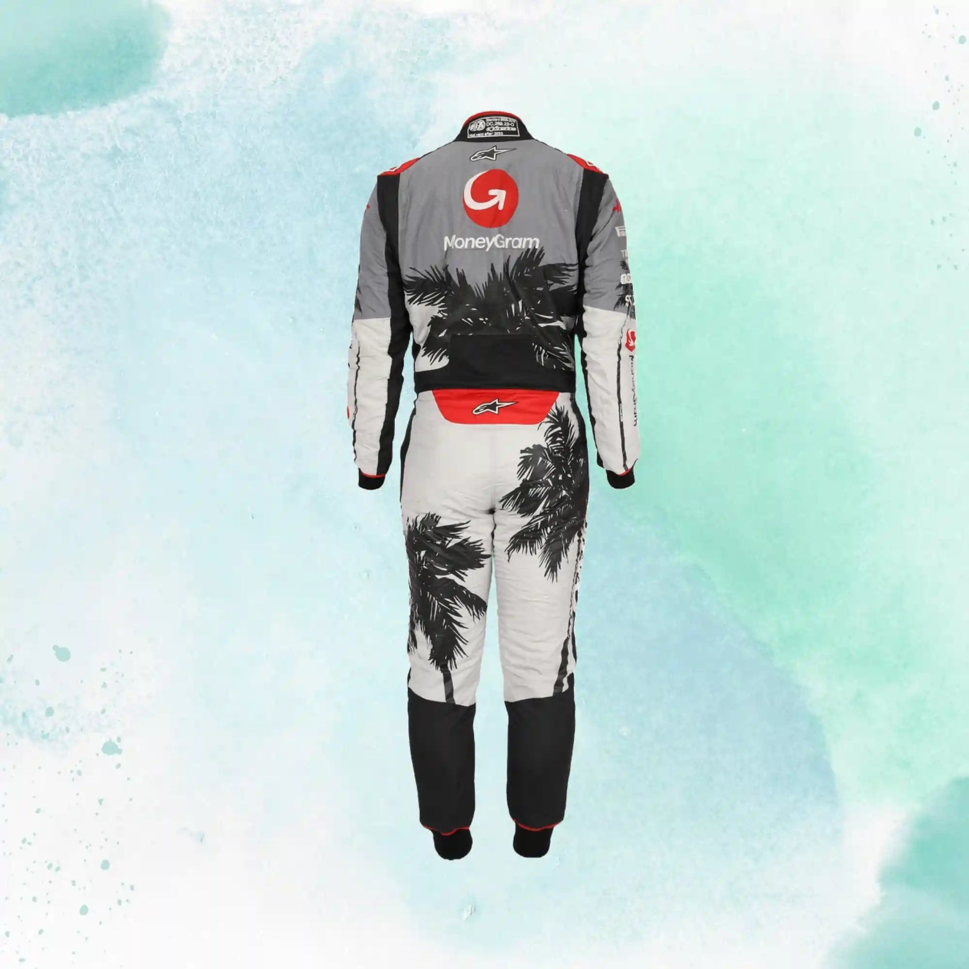 Manufactured by CRAZE RACEWEARS 2023 Kevin Magnussen Haas Racing Suit F1 Miami GP Replica CIK-FIA Level 2 approved Suit which is made of High Quality Shine Nylon Fabric with cotton towel lining, with all Sublimation logo, Heavy duty zippers, stylish design with racing strips on front, Action back stretchable material on back & sleeves for more comfortable during race drive.