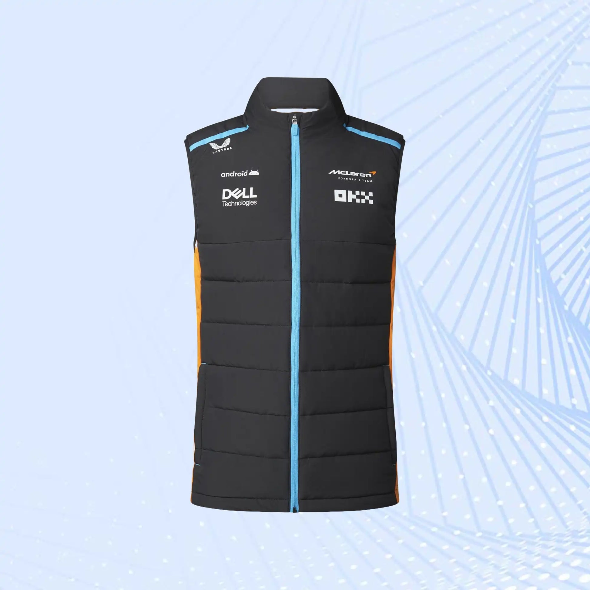 Wear your McLaren team spirit anywhere from trackside to the street with the official McLaren Replica collection. This team gilet is ideal for adding some extra warmth and some authentic F1 style to your outfit all at once. Polyester insulation ensures you’ll stay snug and warm while the McLaren and Formula 1 branding give you a great look you can wear anywhere.
