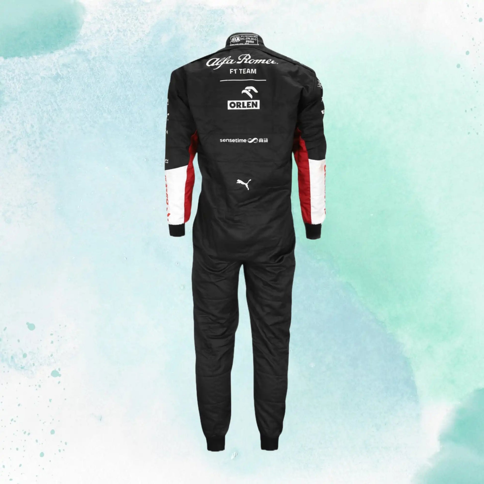 New 2023 Zhou Guanyu F1 Team Replica Racing Suit Alfa Romeo CIK-FIA Level 2 approved Suit which is made of High Quality Shine Nylon Fabric with cotton towel lining, with all Sublimation logo, Heavy duty zippers, stylish design with racing strips on front, Action back stretchable material on back & sleeves for more comfortable during race drive.