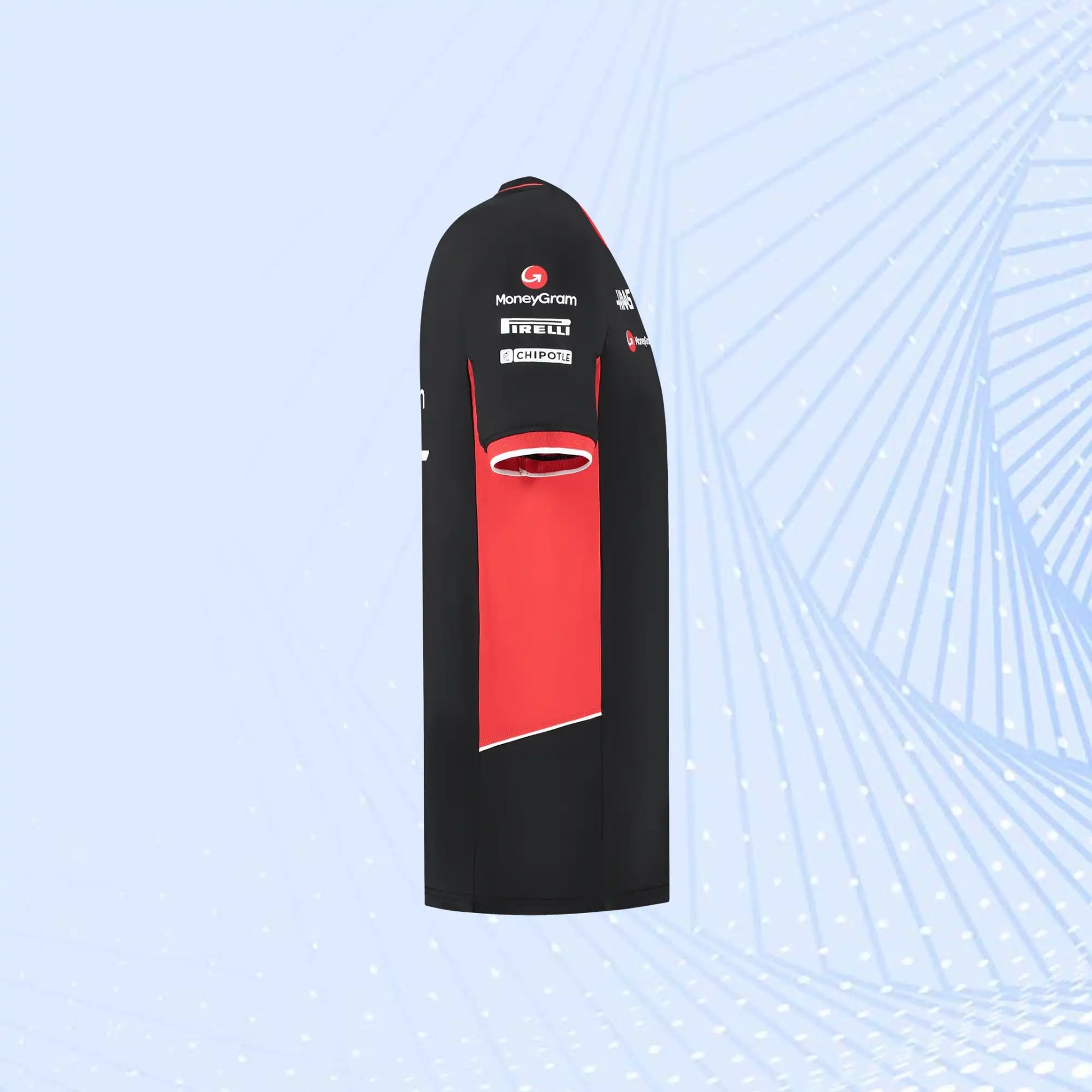 Show your support with the Haas F1 Fitted T-shirt. This official merchandise item is part of the MoneyGram Haas F1 teamwear collection, and is a replica of the driver t-shirts worn by Kevin Magnussen and Nico Hulkenberg for the 2024 season. The fitted t-shirt is comfortable to wear thanks to the elastane incorporated into the material, and features the official team logo and sponsor logos for 2024, so you can look the part.