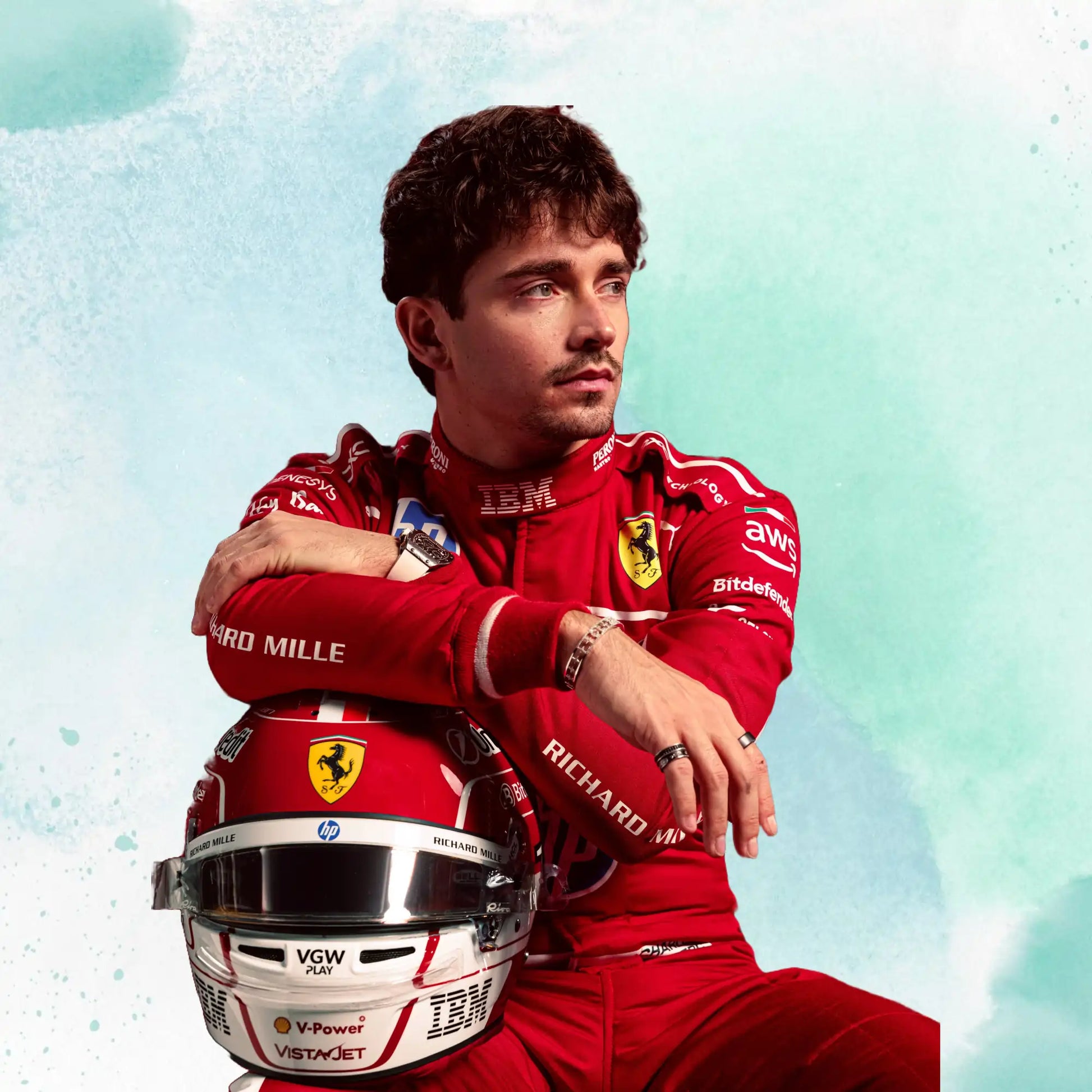 New 2025 Charles Leclerc Scuderia Ferrari HP F1 Team Replica Racing Suit