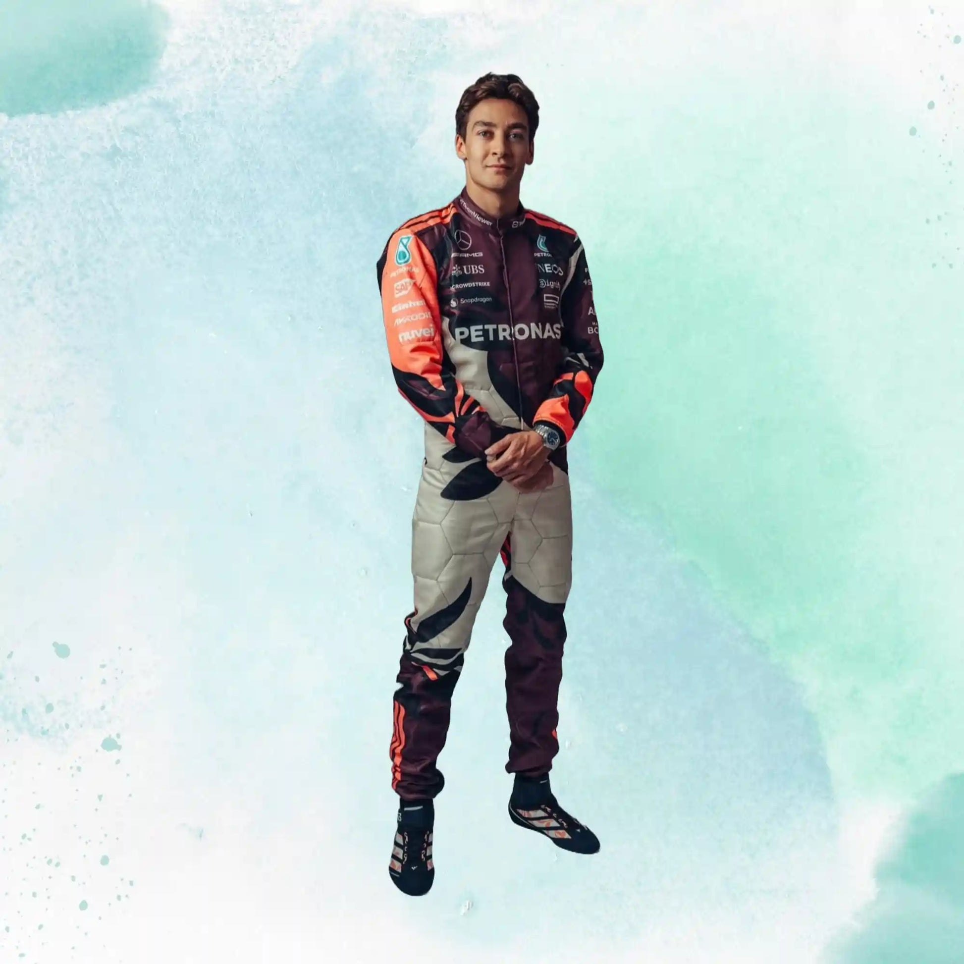 The New 2025 Miami Grand Prix George Russell Mercedes AMG F1 Replica Racing Suit is a fully Sublimation printed kart suit which eliminates any panel stitching used in traditional suits for a more comfortable fit and feel. Constructed with a lightweight Cordura outer later for abrasion protection with a soft knitted inner lining. An ergonomic body shape improves the fit when seated and reduces material bunching while the fully floating arms provide freedom of movement. Fully printed design, no panel stitching for improved comfort and reduced weight Floating sleeves for freedom of movement.