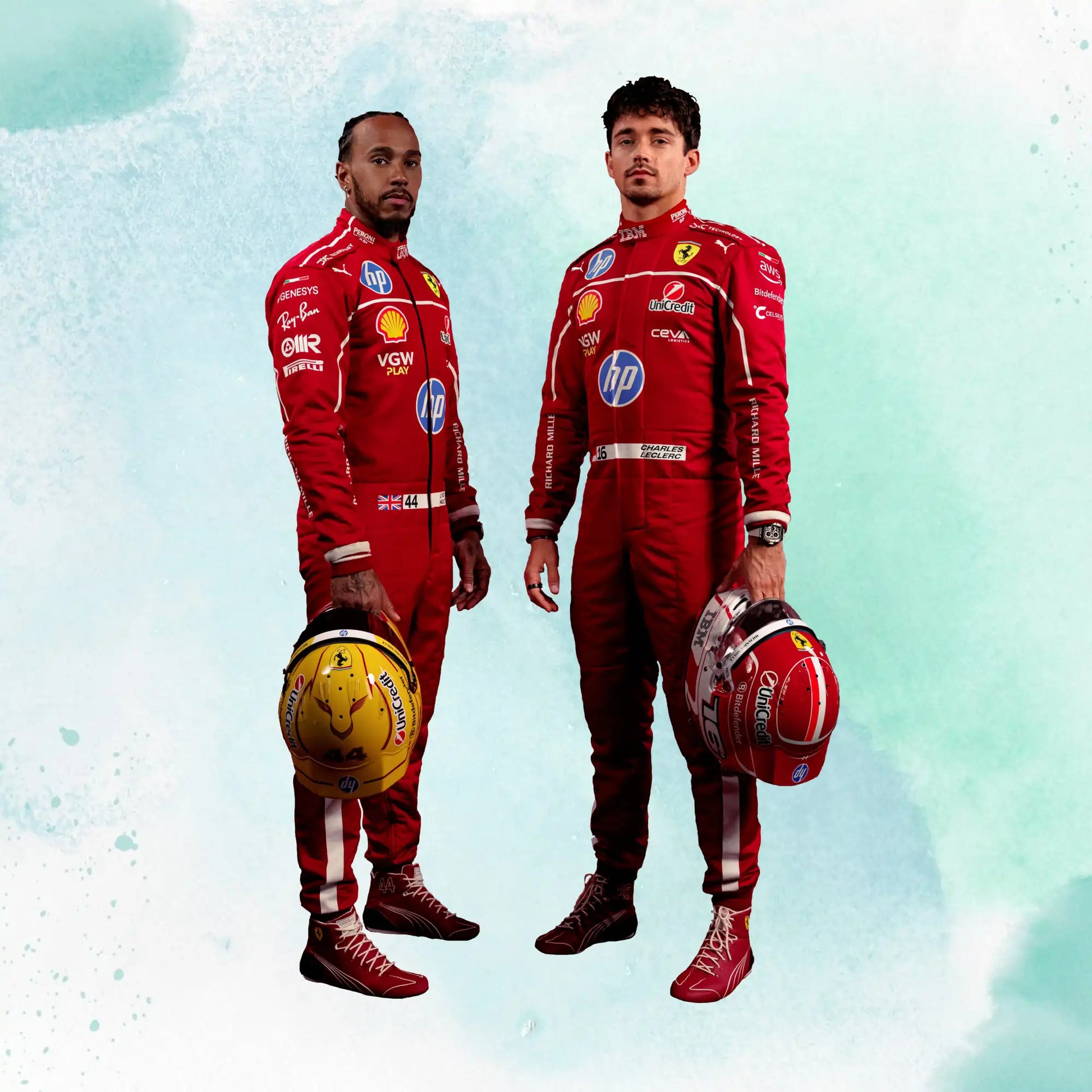 New 2025 Scuderia Ferrari HP Charles Leclerc & Lewis Hamilton F1 Team Replica Racing Suit