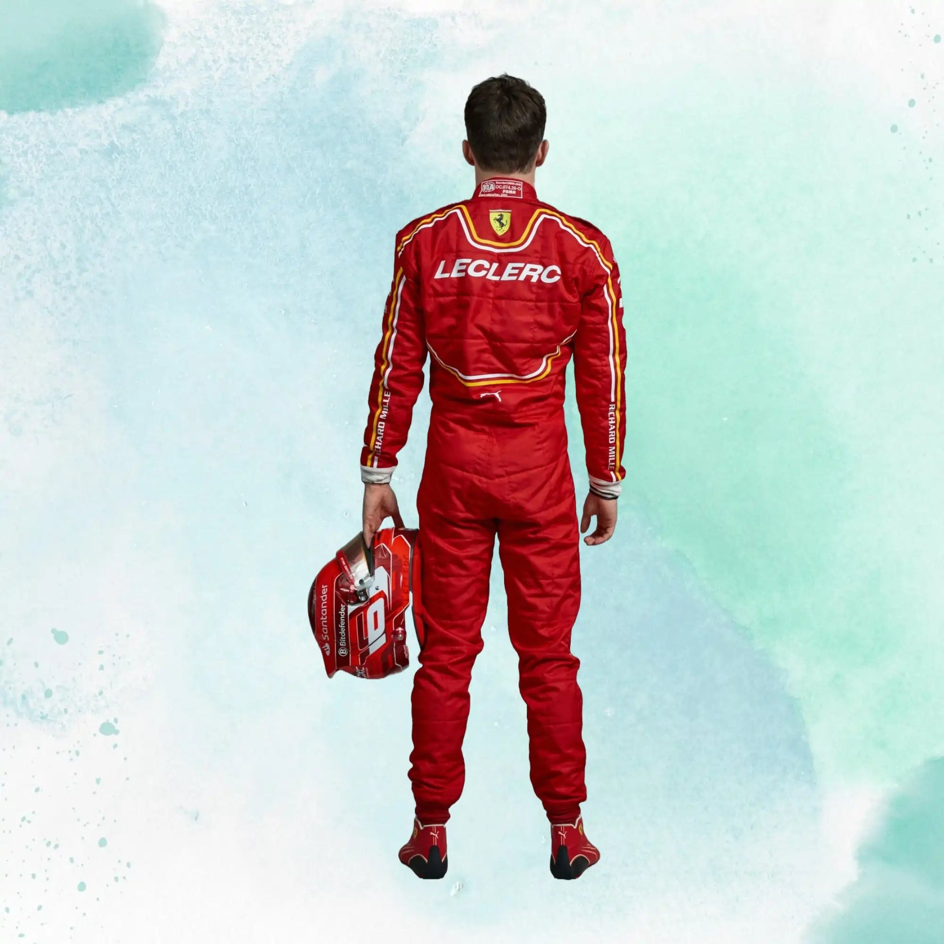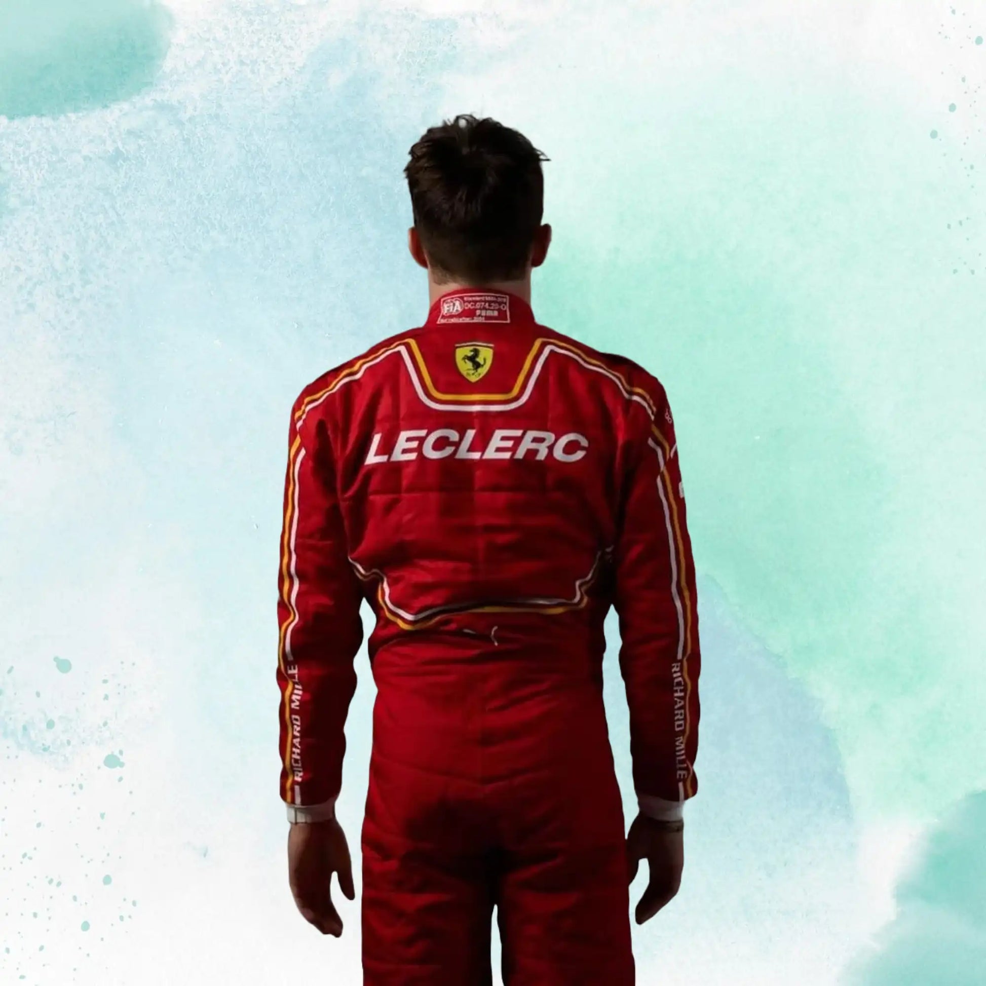 The New Charles Leclerc 2024 Scuderia Ferrari F1 Team Replica Racing Suit is a fully Sublimation printed kart suit which eliminates any panel stitching used in traditional suits for a more comfortable fit and feel. Constructed with a lightweight Cordura outer later for abrasion protection with a soft knitted inner lining. An ergonomic body shape improves the fit when seated and reduces material bunching while the fully floating arms provide freedom of movement. Fully printed design, no panel stitching for improved comfort and reduced weight Floating sleeves for freedom of movement.
