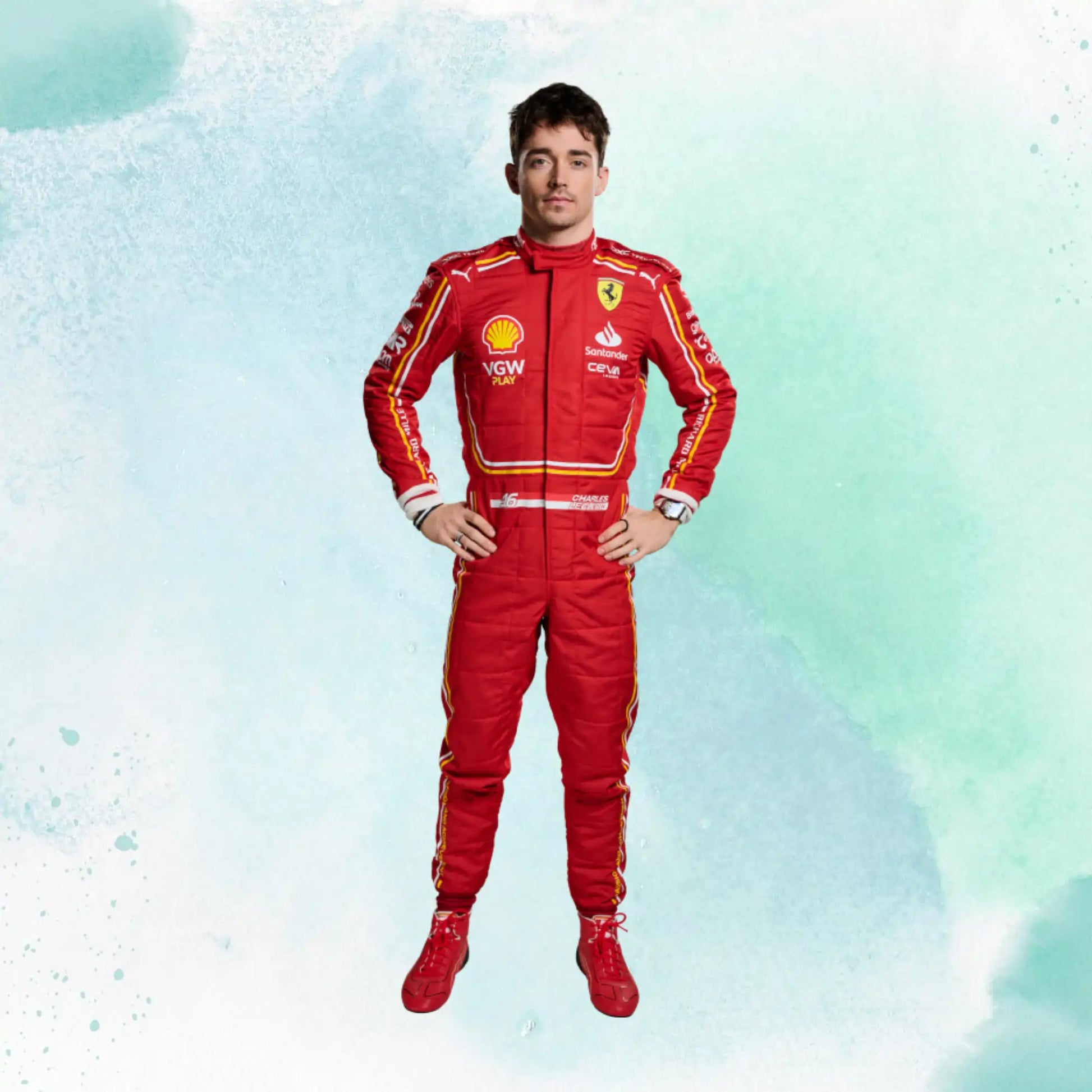 New Charles Leclerc 2024 Scuderia Ferrari F1 Team Replica Racing Suit