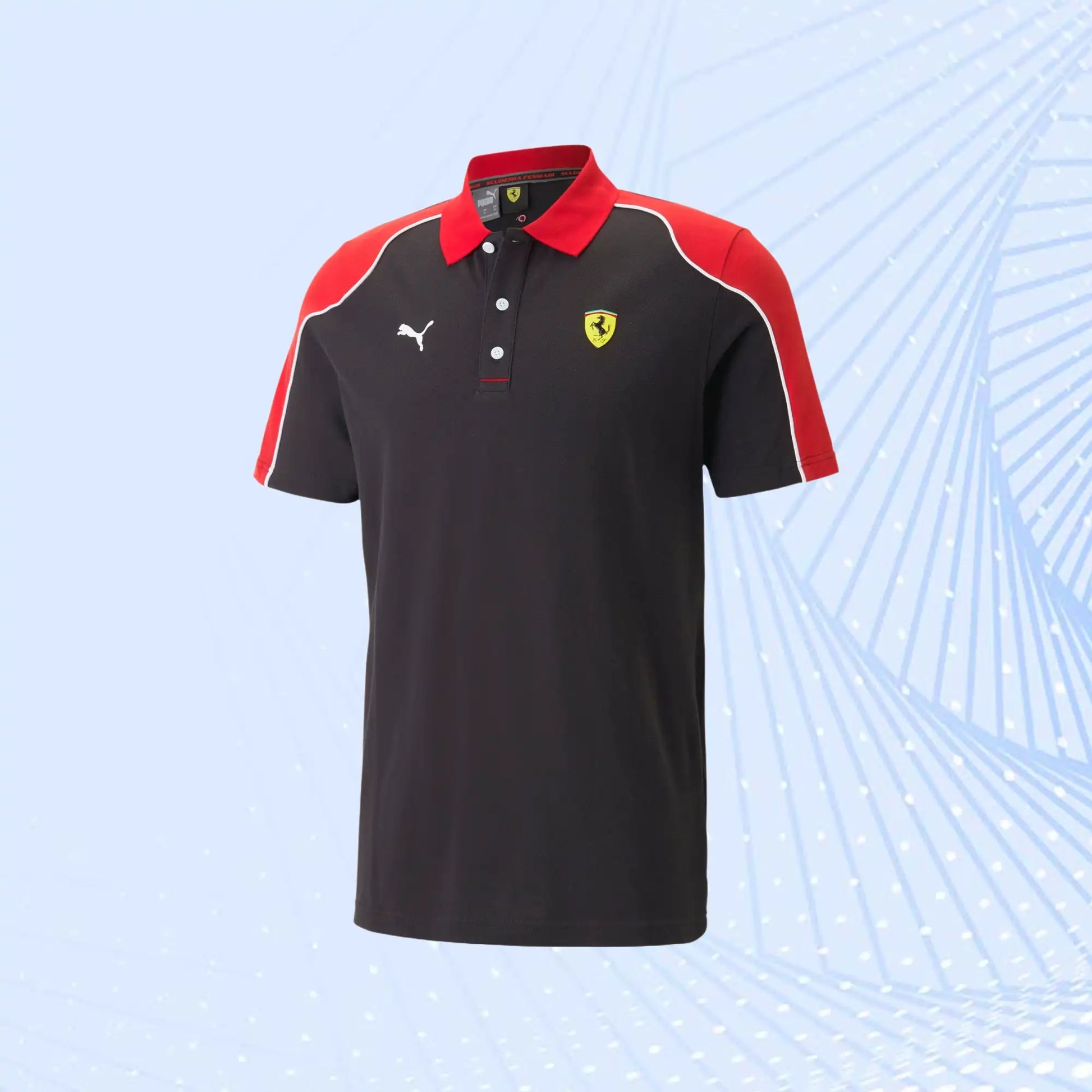 Take your Scuderia Ferrari passion from the track to the streets with the official Puma collection. This polo has quintessential Formula One design inspiration, featuring classic Ferrari red for the collar and over the shoulders and sleeves, contrast seams and a classic 3-button placket. The Ferrari and Puma logos sit on the chest so you can wear your racing spirit wherever you go.